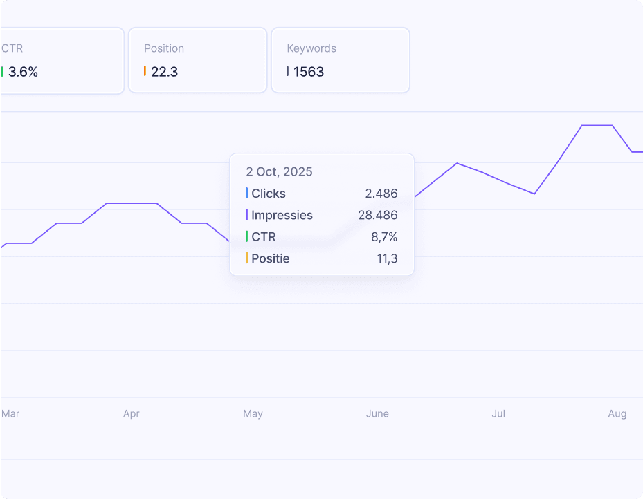 Our SEO dashboard is a powerful tool that provides a complete overview of how your keywords and pages perform in search engines.